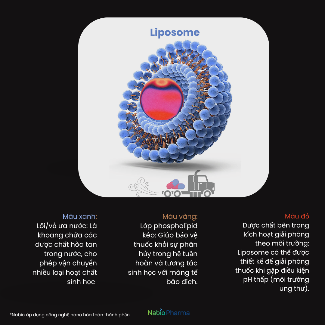 Nhờ cấu trúc linh hoạt này, liposome có khả năng bảo vệ dược chất, kiểm soát tốc độ phóng thích và tối ưu hóa tác dụng của thuốc.